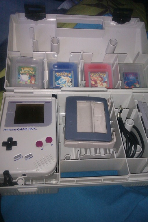 Je suis donc revenu de ma journée de braderie avec qu’une seule pièce assez sympa : Une mallette de voyage GAME BOY et le tout rempli!