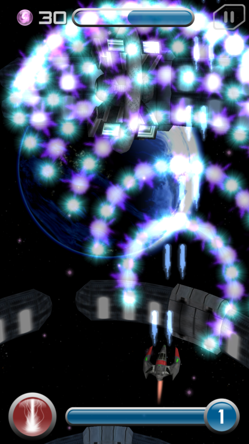 Adrian Courrèges : A l’époque où j’ai commencé à développer Exp3D (Mars 2011), Android était jeune et l’offre en shoot-them-up bien pauvre. Je voulais créer un space-shooter en 3D, rapide, fluide, beau, simple à contrôler qui pouvait se démarquer de la concurrence. Sur le plan personnel ma motivation pouvait s’expliquer par principalement deux raisons : la liberté artistique et le défi technique qu’un tel projet offrait.