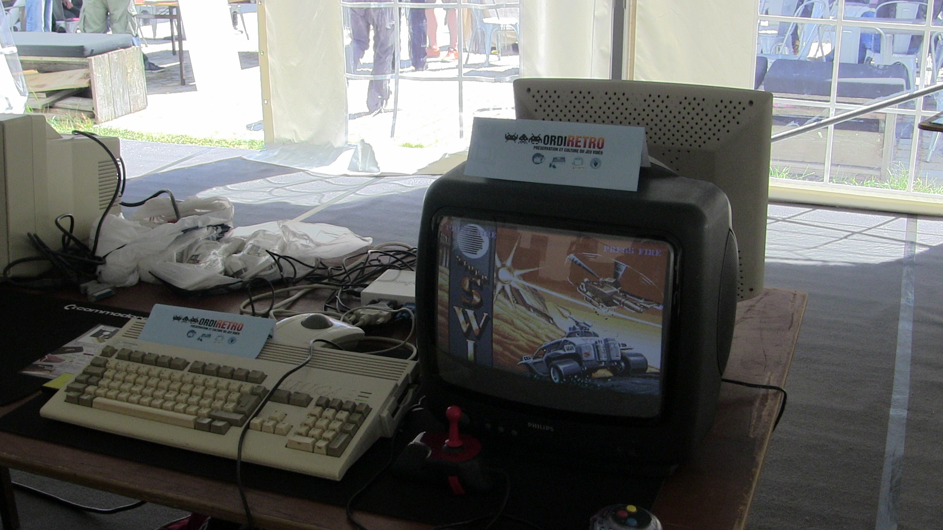 Le lieu est sympathique, un café situé dans un quartier excentré d’Amsterdam, calme et au bord de l’eau. Une grande tente a été installée en face du café afin d’accueillir une poignée de stands et les machines de quelques passionnés. Le temps se dégageant progressivement, ça devient même carrément agréable, ce que les utilisateurs des quelques chaises longues mises à disposition n’ont pas contesté. Mais évidemment la majorité des geeks présents se tournaient vers d’autres soleils et on peut dire que nous avions le choix !