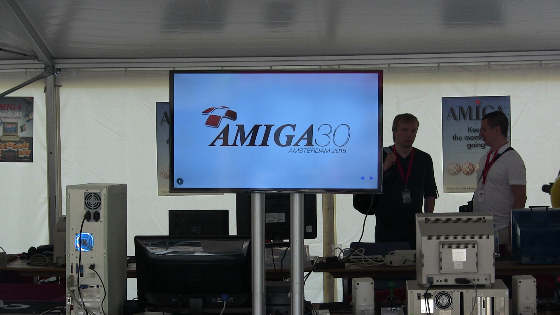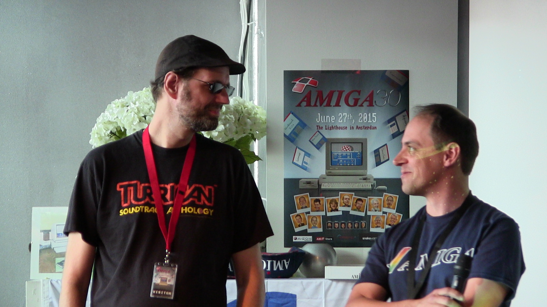 D’autres invités illustres étaient présents comme David Pleasance, ancien dirigeant de Commodore UK, ou Petro Tyschtschenko, le dernier homme à avoir présidé au destin de l’Amiga après la faillite de Commodore et le rachat de la marque par Escom puis Gateway. Plus discret et venu en voisin, Dennis van Weeren était également là : c’est lui qui a été à l’origine du projet Minimig, une réimplémentation de l’Amiga 500 dans une puce FPGA, passé depuis en Open Source. Michael Battilana de Cloanto, en plus d’offrir aux visiteurs un exemplaire d’Amiga Forever 2014, courrait partout. Franck Sauer (Agony, Unreal) et Jon Hare (Sensible Soccer, Cannon Fodder) étaient également de la partie et répondaient volontiers aux questions des visiteurs. D’autres invités étaient annoncés mais nous n’avons malheureusement pas eu l’occasion de les voir tous. En espérant qu’un tel rassemblement se reproduise dans un futur proche!