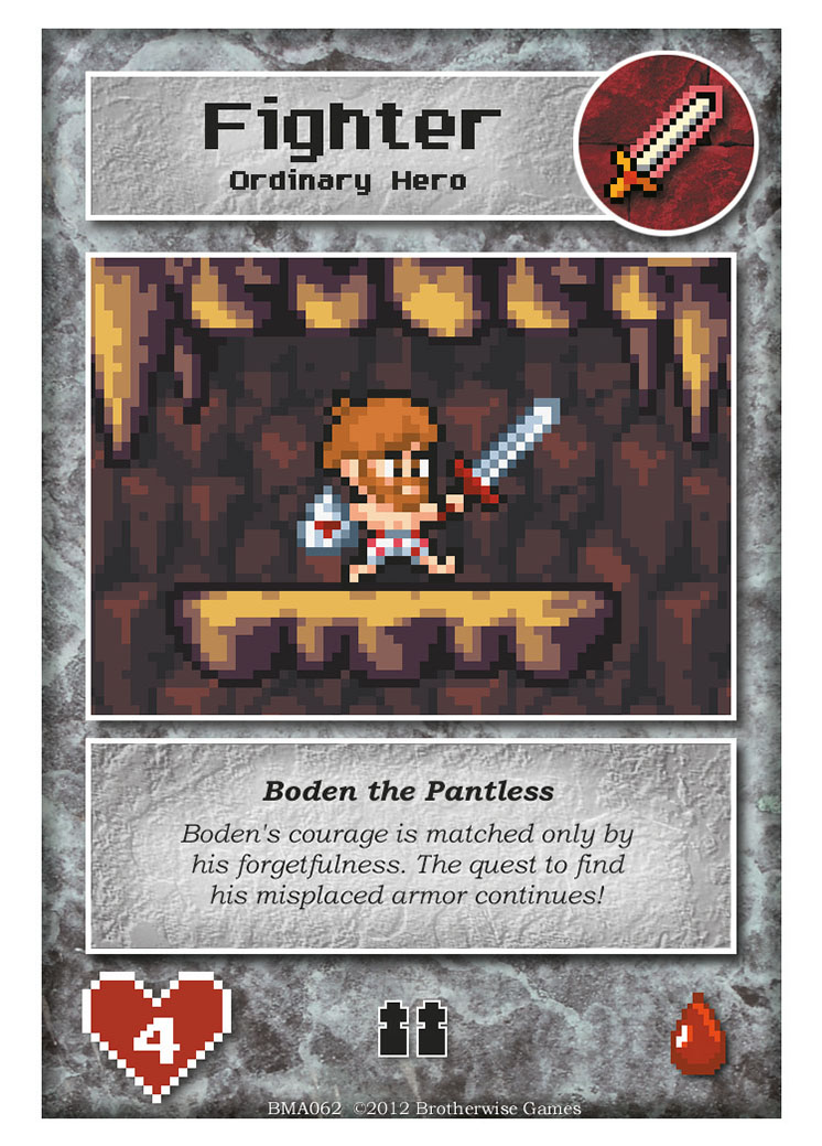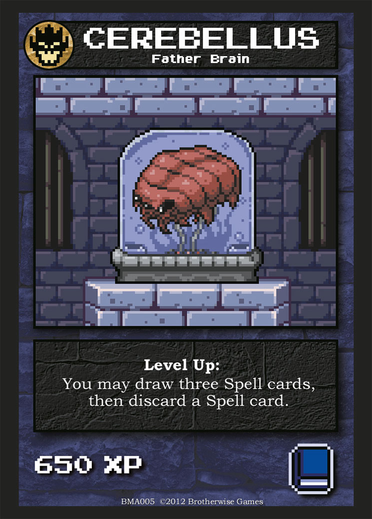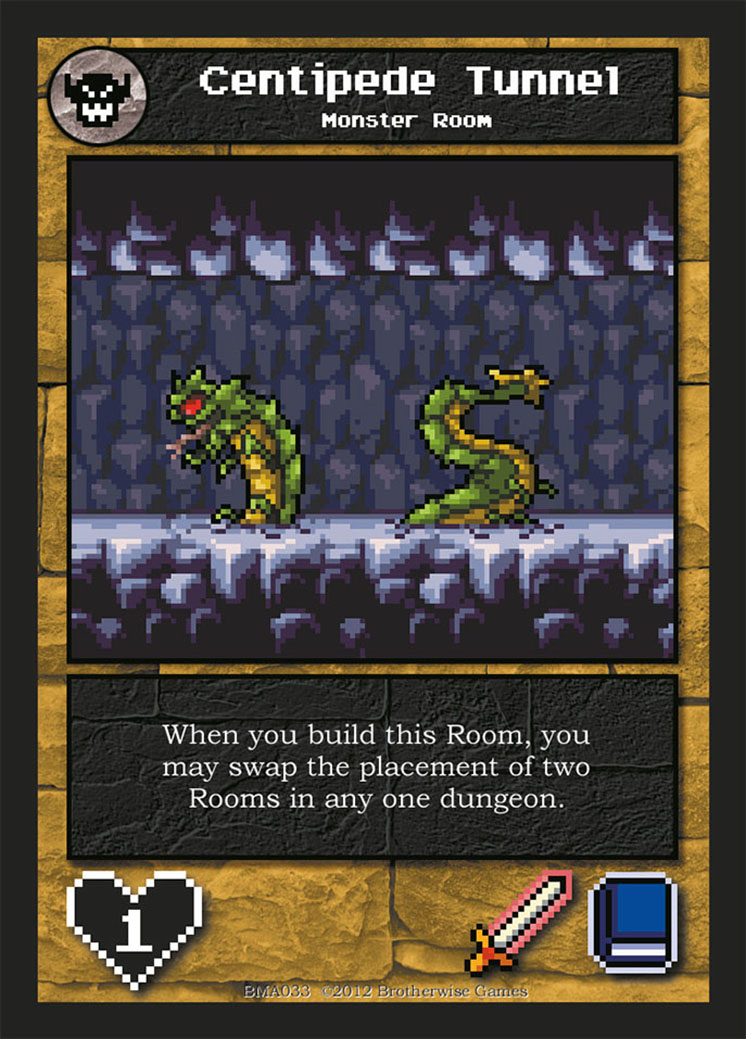 BMVous l’aurez compris, ce jeu a un petit air de Dungeon Keeper sauf que là c’est avec des cartes. Mais l’influence des jeux vidéo est transparente à bien des égards, à commencer par le design très réussi des illustrations en pixel art. De nombreuses références geek à souhait parsèment les cartes et parodient allègrement Lara Croft, Metroid et autre Harry Potter. Repérer ces clins d’oeil fait partie du charme incontestable du jeu mais ça n’est cependant pas son point fort.